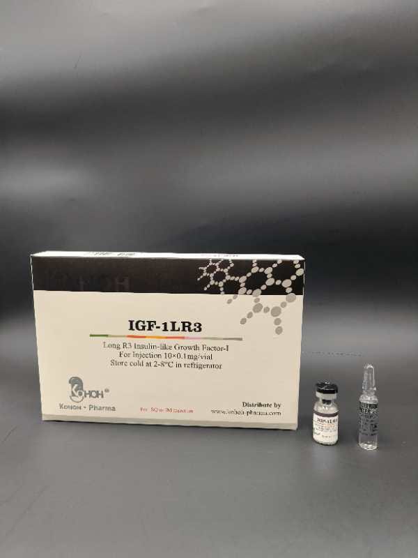 IGF-1 LR3 is a synthetic long-acting analogue of IGF-1. Human Growth Hormone (HGH) is converted to IGF-1 in the liver and is responsible for many of the positive effects of GH therapy. Unfortunately, IGF-1 is cleared rapidly after conversion limiting the efficacy of direct IGF-1 therapy. By tagging IGF-1 at the R3 node, the half-life is greatly extended making Long R3 IGF-1 a practical and powerful way to Improve Metabolic Rate, Stimulate Local Muscle Growth, Regenerate Nerve Tissue, Reduce Visceral Fat, Increase Protein Transport, and Reduce Muscle Breakdown.