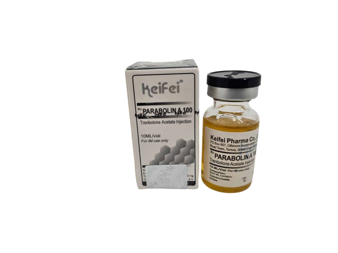 Presentation: 10ml multi dose clear vial with Keifei® wording imprinted on the side. 10ml x Trenbolone Acetate 100mg/ml. Sealed with black flip off cap imprinted with keifei® wording. Each vial comes with 1 set of QR authentication codes. 10 vials/ box in a white and black colour outer box.