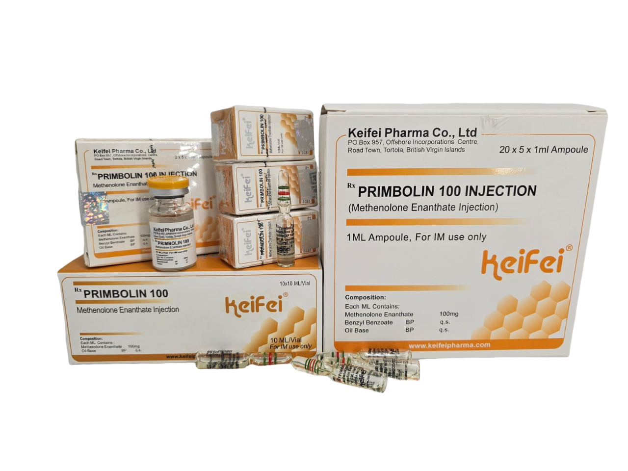 Presentation: 10ml multi dose clear vial with Keifei® wording imprinted on the side. 10ml x Methenolone Enanthate 100mg/ml. Sealed with dark yellow flip off cap imprinted with keifei® wording. Each vial comes with 1 set of QR authentication codes. 10 vials/ box in a white and darker yellow colour outer box.